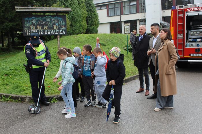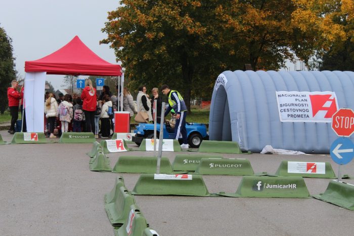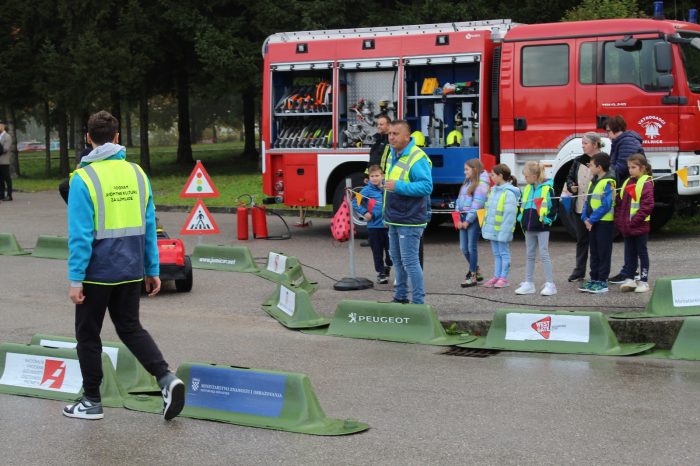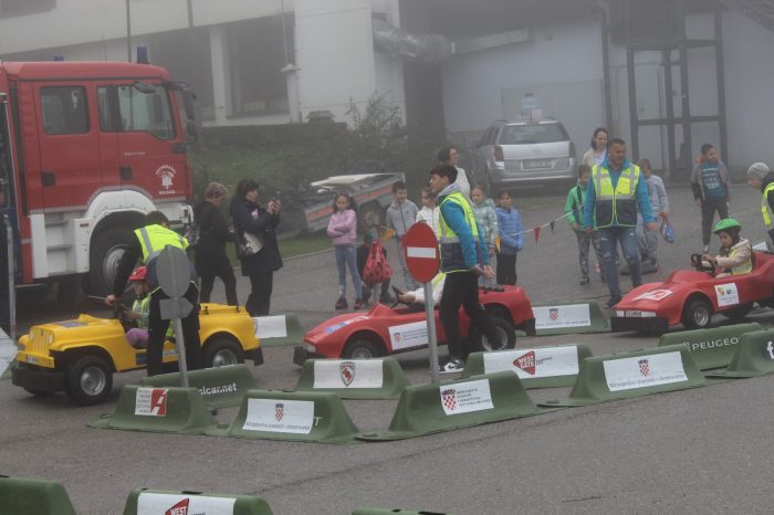 Nakon teorijskog dijela u trajanju od 45 minuta gdje su učenici kroz interaktivno predavanje učili o sigurnom ponašanju u cestovnom prometu djeca su izašla na školsko igralište gdje ih je dočekao veliki mobilni prometni poligon, vatrogasci, policija i crveni križ sa svojim radionicama.