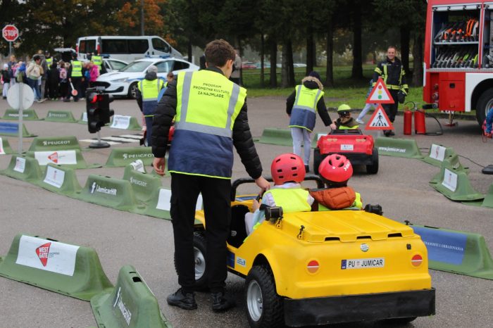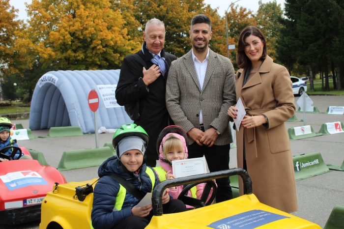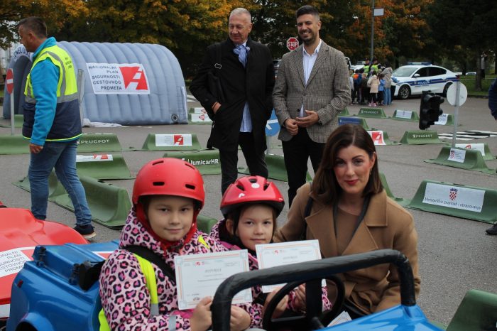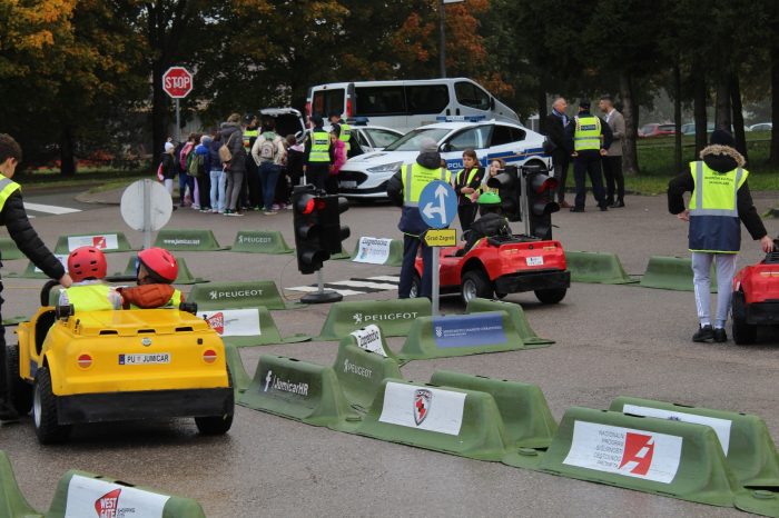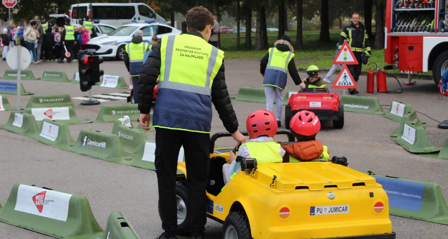 Na prometnom poligonu na praktičnom dijelu programa pod budnim okom naših iskusnih instruktora u pravim mini električnim -automobilima, djeca su imala priliku da stisnu gas i okušaju se u ulozi vozača, dožive prometne znakove, semafore, pješačke prijelaze i sva ostala prometna obilježja tj. da na jedinstven način uče o sigurnosti u cestovnom prometu, a sve u cilju da postanu još bolji pješaci.