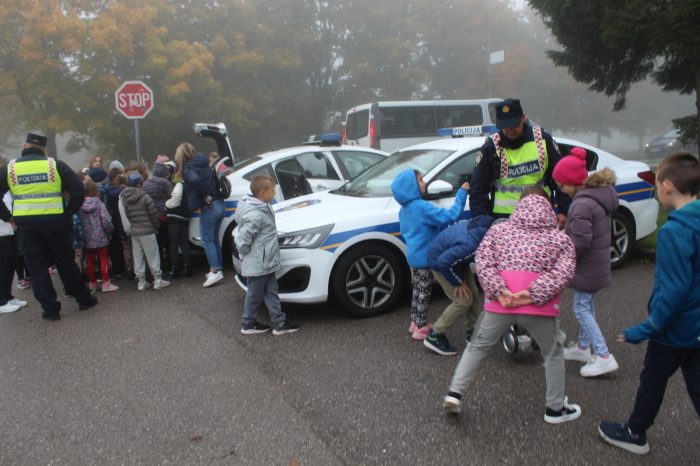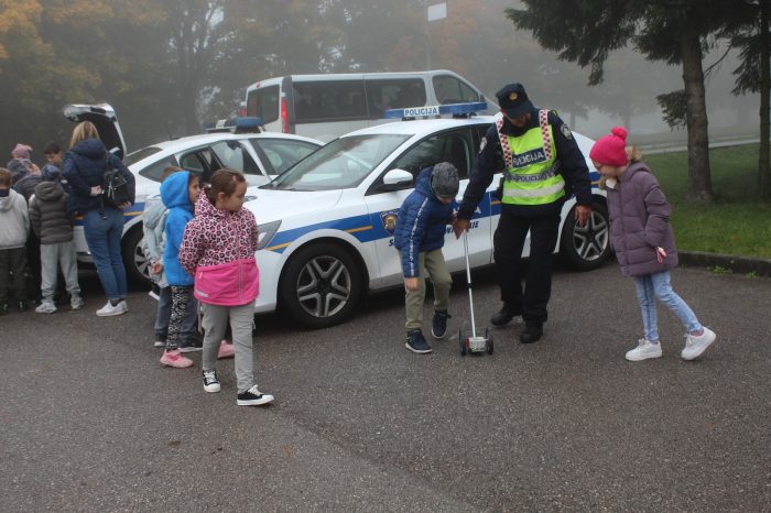 Nakon vatrogasaca djeca su imala priliku upoznati se i s policijskim vozilom te zanimanjem policajca. Nakratko su obnovili osnovna znanja iz prometa te nastavili isprobavati policijska svjetlosna upozorenja i još mnoga toga u i oko policijskog vozila, kojeg su ponosno prezentirali policijski službenici iz PP Delnice, gđa Sanja Ružić, gosp. Siniša Jurković i gosp. Valter Troha.