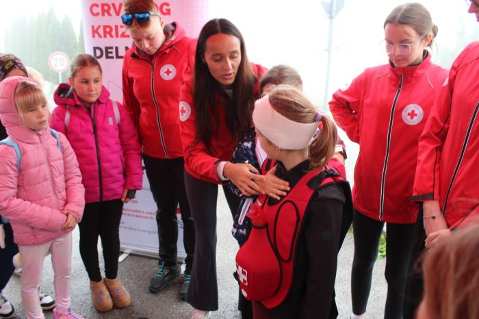 Kratku školu prve pomoći održao je tim Gradskog društva crvenog križa Delnice na čelu s ravnateljicom Snježanom Krizmanić .
