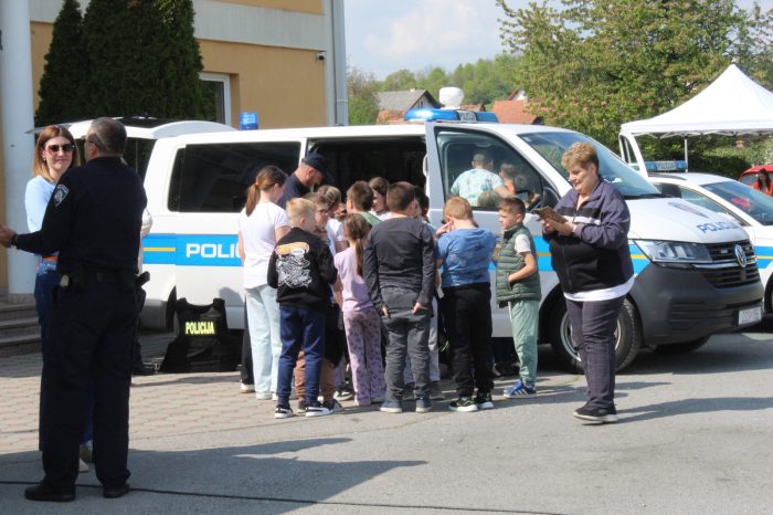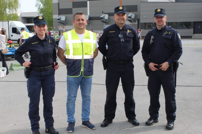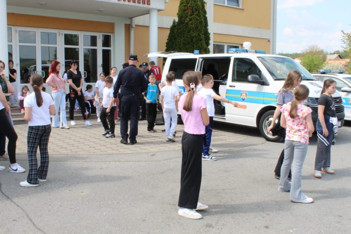 Uz prometni poligon, djeca su imala priliku upoznati se i s policijskim vozilom te zanimanjem policajca, koje su predstavili policijski službenici PP Pleternica, gđa Sanja Jurčević i gosp. Nino Grandić. Iz PU Požeško-slavonske sudjelovao je i voditelj poslova prometne policije, gospodin Ivan Zeljko, kojem se posebno zahvaljujemo na suradnji i doprinosu uspješnoj organizaciji manifestacije. Djeca su bila oduševljena prezentacijom policije.