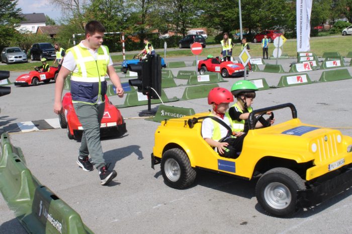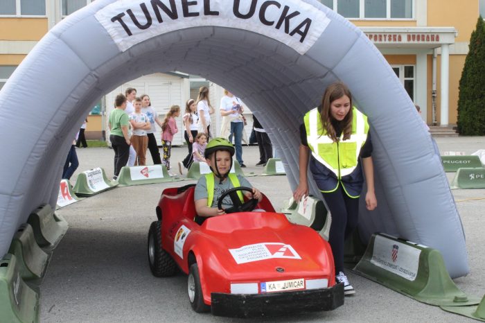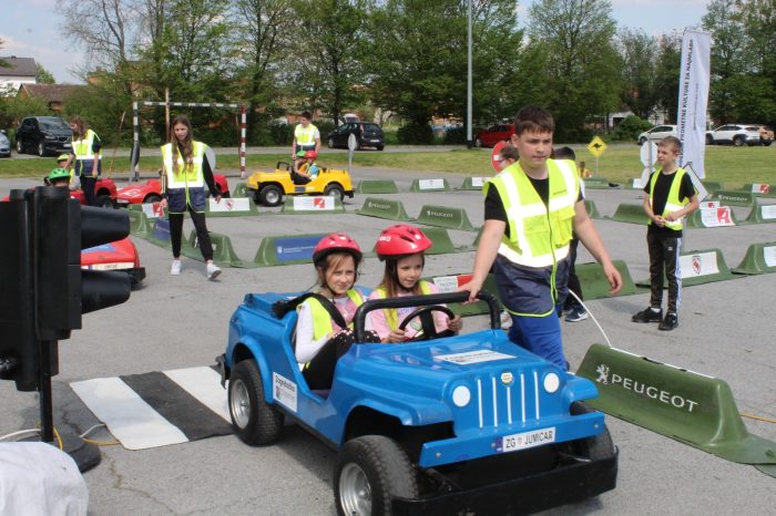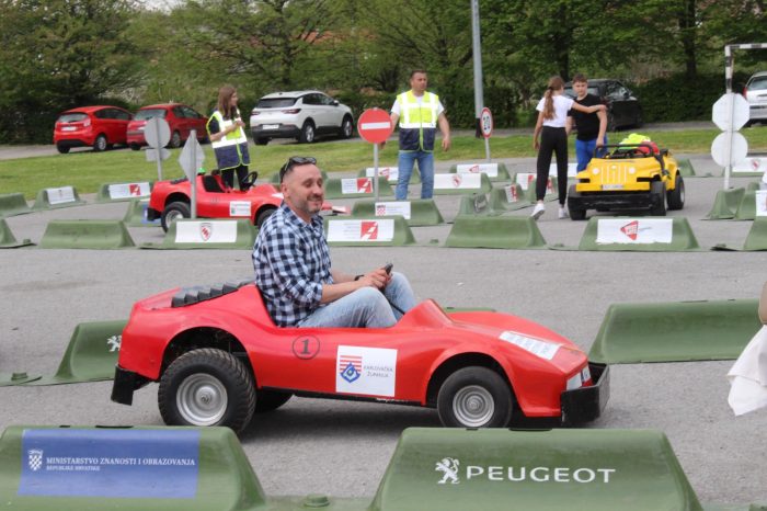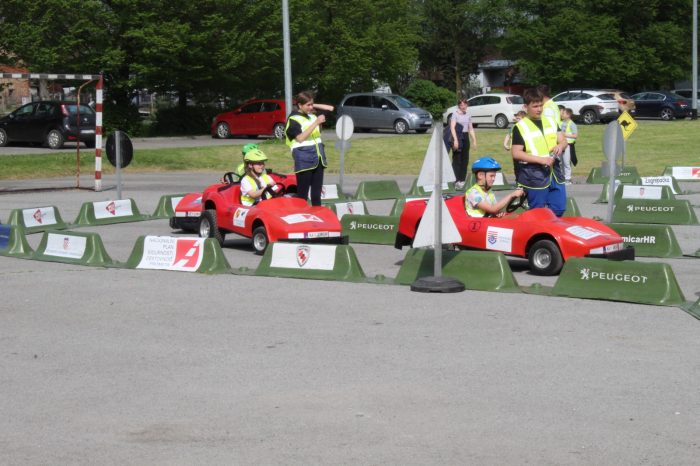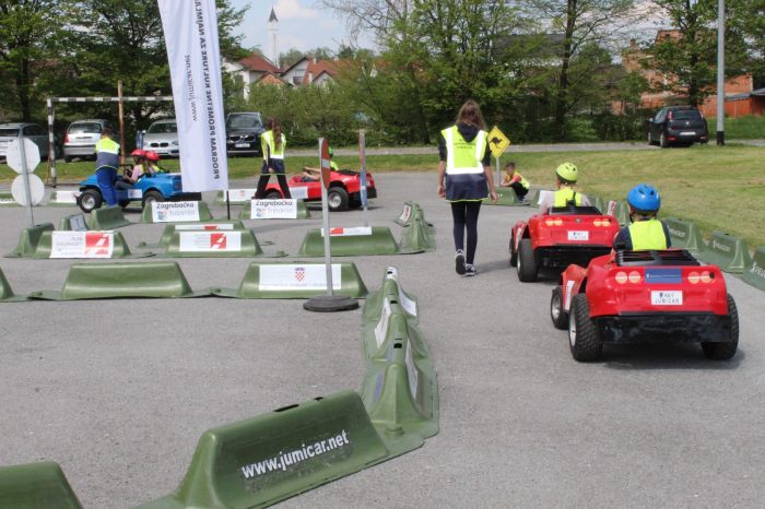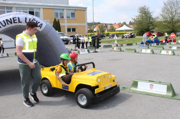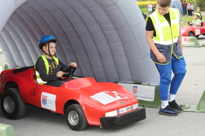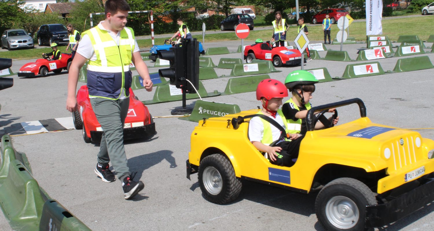 Nakon multimedijskog teorijskog dijela, učenici su izašli na školsko igralište gdje ih je dočekao atraktivan i velik mobilni prometni poligon. Ondje su, uz stručni nadzor instruktora, imali priliku upravljati mini električnim automobilima te u realnim uvjetima upoznati prometna pravila, znakove, semafore i pješačke prijelaze – i to iz perspektive vozača, a sve s ciljem da postanu još bolji i odgovorniji pješaci. Posebnu pomoć u regulaciji prometa pružili su učenici sedmog razreda – Ivano, Zara, Matej i Petra, članovi školske prometne jedinice, koji su pokazali zavidnu razinu odgovornosti i angažmana.