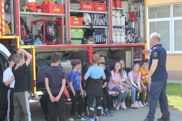 Aktivnostima se pridružio i vatrogasac predsjednik Vatrogasne zajednice Požeško slavonske gosp. Drago Žnidaret koji je najmlađima predstavio svoju opremu, sadržaj vozila, omogućio ulazak u vatrogasni kamion te demonstrirao puštanje sirene. Ovim putem upućujemo pozdrave i zahvalu na podršci programu predsjedniku gos. Radovanu Rotar, zapovjedniku gosp. Ivici Klobučar i tajniku gosp. Ivanu Novosad ispred DVD-a Pleternica.