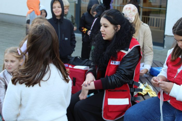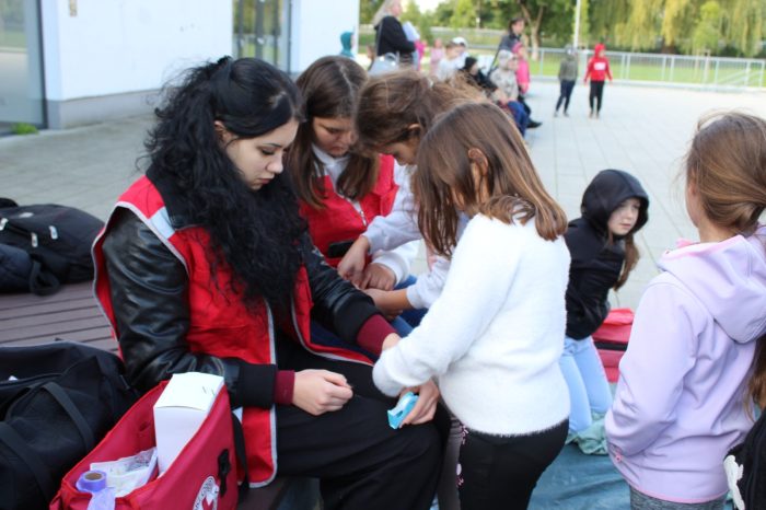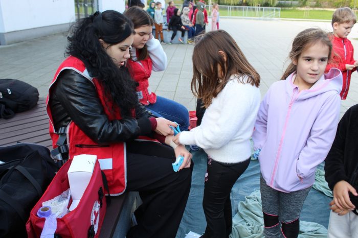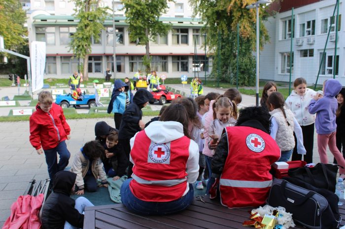 Nakon prometa održala se radionica Prva pomoć koju su provodili volonteri Lucija Far, Iva Morović i Stella Bucić ispred GDCK Zagreb. Ukratko se ponavljaju brojevi hitnih službi nakon čega se učenicima postavlja pitanje o razlici između prve i hitne pomoći. Naglašava se važnost onih informacija koje je pri tom pozivu nužno reći (Što se dogodilo? Gdje se dogodilo? Kako se dogodilo?).. Nakon toga djeca imaju priliku naučiti kako postupiti kada su u pitanju lakše ozljede (ogrebotine, opekotine, giljotine) ili kako postupiti u nekim situacijama (krvarenje iz nosa). Hvala gđi Vladimiri Čivrag Gosorić, voditeljici mladeži GDCK Zagreb na super radionici i uspješnoj suradnji.