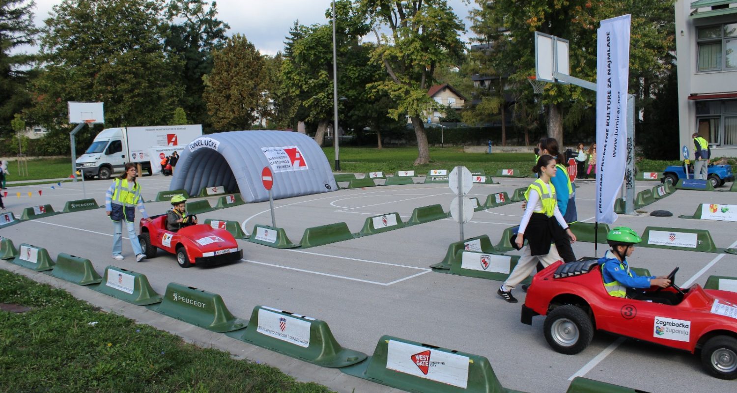 Nakon multimedijskog teorijskog dijela u trajanju od 45 minuta gdje su učenici kroz interaktivno predavanje učili o sigurnom ponašanju u cestovnom prometu, djeca su izašla na školsko igralište gdje ih je dočekao veliki mobilni prometni poligon.