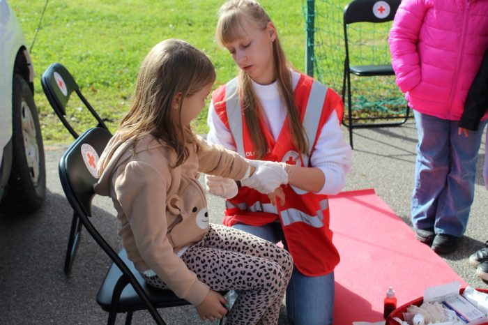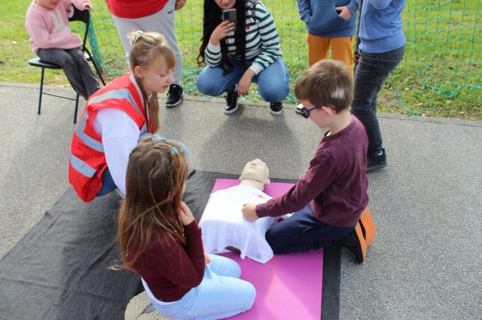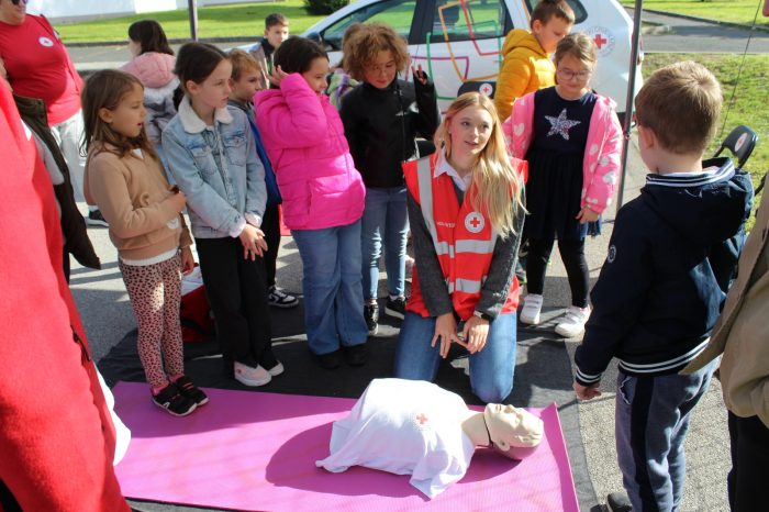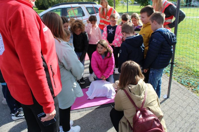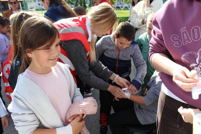 Posebno licencirane za pružanje ovakvog vida edukacije iz prve pomoći za naše najmlađe. Ukratko se ponavljaju brojevi hitnih službi nakon čega se učenicima postavlja pitanje o razlici između prve i hitne pomoći. Naglašava se važnost onih informacija koje je pri tom pozivu nužno reći (Što se dogodilo? Gdje se dogodilo? Kako se dogodilo?).. Nakon toga djeca imaju priliku naučiti kako postupiti kada su u pitanju lakše ozljede (ogrebotine, opekotine, giljotine) ili kako postupiti u nekim situacijama (krvarenje iz nosa). Hvala na sudjelovanju i aktivnostima kojima je najmlađe uvele u svijet “ osnove prve pomoći.