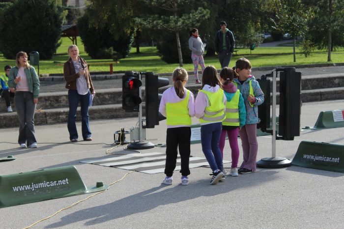 Polaznici programa dobro su se snašli na simuliranoj prometnici na kojoj su promet regulirali iskusni instruktori uz pomoć školske prometne jedinice Vedran, Leonardo, Ivan i Matej iz 8.b razreda na čemu smo im zaista zahvalni. Hvala na organizaciji školske prometne jedinice.