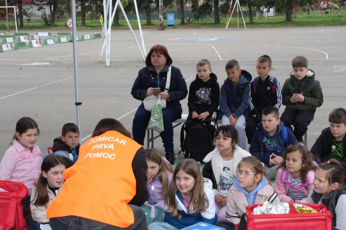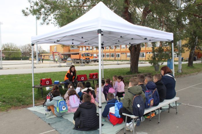 Radionicu prve pomoći, vodila je djelatnica Jumicar Prve pomoći gđica Paula Fait te približila važnost pravovremenog reagiranja u hitnim situacijama. Djeca su učila kako prepoznati ozljede, pravilno reagirati te pružiti osnovnu pomoć, a sve kroz praktične vježbe i timski rad.