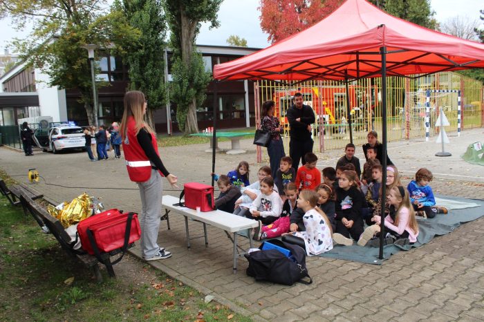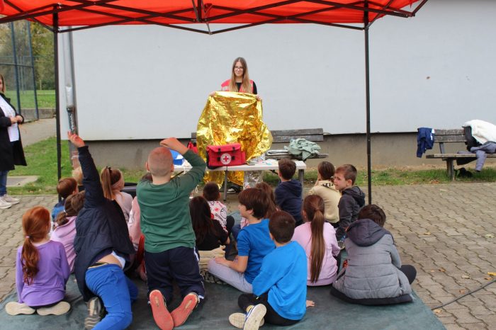 Kratku školu prve pomoći održala je Ana Perić, volonter GDCK Zagreb, posebno licencirana za pružanje ovakvog vida edukacija iz prve pomoći za naše najmlađe. U radionici se ponavljaju brojevi hitnih službi nakon čega se učenicima postavlja pitanje o razlici između prve i hitne pomoći. Zahvaljujemo cijelom timu GDCK Zagreb na suradnji.