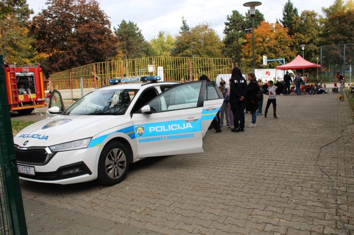 Pored prometnog poligona djeca su imala priliku upoznati se s policijskim vozilom i zanimanjem policajca kojeg su ponosno prezentirale policijske službenice iz IV PP Zagreb gđa Milijana Fabrični i gđa Mira Tukera.