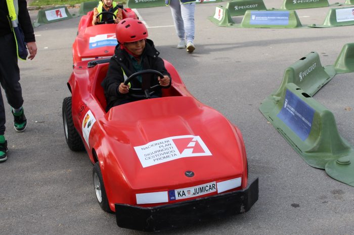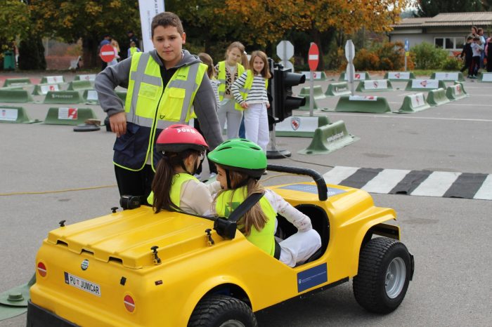 Na praktičnom dijelu programa pod budnim okom naših iskusnih instruktora u pravim mini električnim automobilima imali su priliku da stisnu gas i okušaju se u ulozi vozača, dožive prometne znakove, semafore, pješačke prijelaze i sva ostala prometna obilježja da na jedinstven način uče o sigurnosti u prometu, a sve u cilju da postanu bolji pješaci.