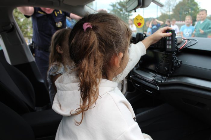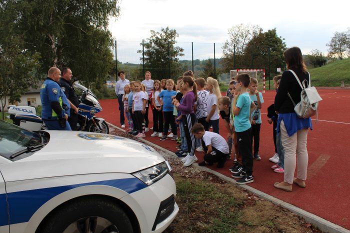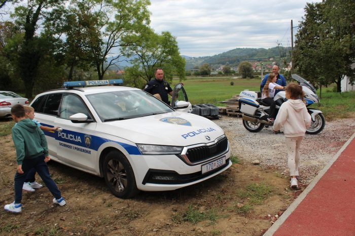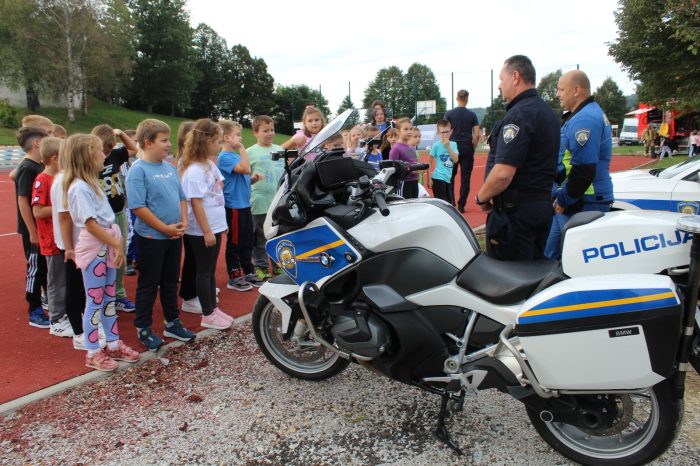 Pored prometnog poligona djeca su imala priliku upoznati se sa zanimanjem policajca i policijskim vozilima te njihovom opremom. Ponosno su prezentirali policijski službenici gosp. Stjepan Tovernić, vođa sektora PP Zabok i gosp. Anđelko Škrlec prometni motociklist iz PPRP Krapina.