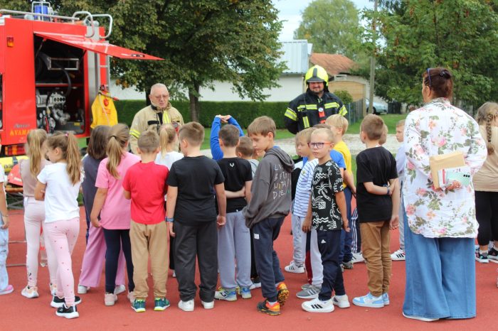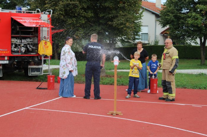Uhodan tim najmlađima je pokazao opremu i sadržaj vozila, ali najzanimljiviji dio svakako je bio demonstracija gašenja požara, ulaz u vatrogasni kamion, puštanje sirene i mnoge druge vatrogasne stvari. DVD-u Sveti Križ Začretje veliko HVALA uz pozdrave : Vatru gasi, brata spasi. Zahvalu na suradnji šaljemo gosp. Karlu Rajačić, zapovjednik.