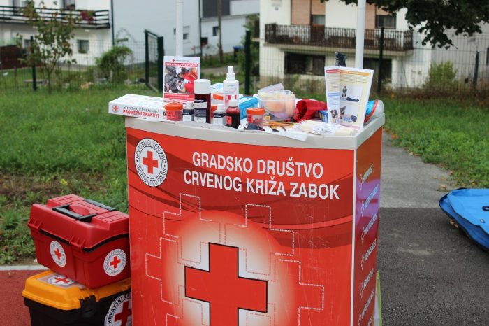 Učenici su sa zanimanjem promatrali kako se zamata lakša ozljeda, a mnogi su i sami iskušali ovu vještinu. Ukratko se ponavljaju brojevi hitnih službi nakon čega se učenicima postavlja pitanje o razlici između prve i hitne pomoći. Naglašava se važnost onih informacija koje je pri tom pozivu nužno reći (Što se dogodilo? Gdje se dogodilo? Kako se dogodilo?).. Nakon toga djeca imaju priliku naučiti kako postupiti kada su u pitanju lakše ozljede (ogrebotine, opekotine, giljotine) ili kako postupiti u nekim situacijama npr. (krvarenje iz nosa)…. Hvala na izvrsnoj prezentaciji i druženju. Veliki pozdrav šaljemo GDCK Zabok i ravnateljici gđi Željki Vukić.