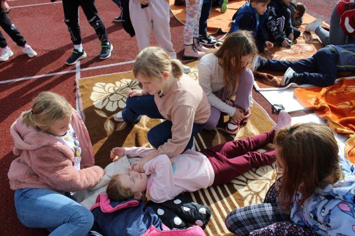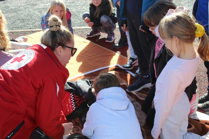 Edukaciju je provodila osobno gđa Tina Šurina i gđa Snježana Koren, djelatnice GDCK Zabok, koje su posebno licencirane za pružanje ovakvog vida edukacije iz prve pomoći za naše najmlađe. Ukratko se ponavljaju brojevi hitnih službi nakon čega se učenicima postavlja pitanje o razlici između prve i hitne pomoći. Naglašava se važnost onih informacija koje je pri tom pozivu nužno reći (Što se dogodilo? Gdje se dogodilo? Kako se dogodilo?).. Nakon toga djeca imaju priliku naučiti kako postupiti kada su u pitanju lakše ozljede (ogrebotine, opekotine, giljotine) ili kako postupiti u nekim situacijama (krvarenje iz nosa). Hvala GDCK Zabok na super radionici !!