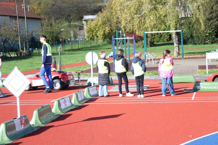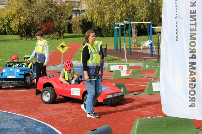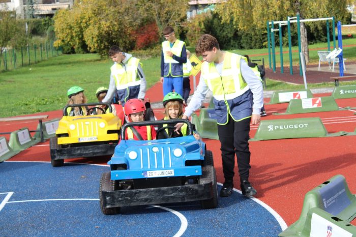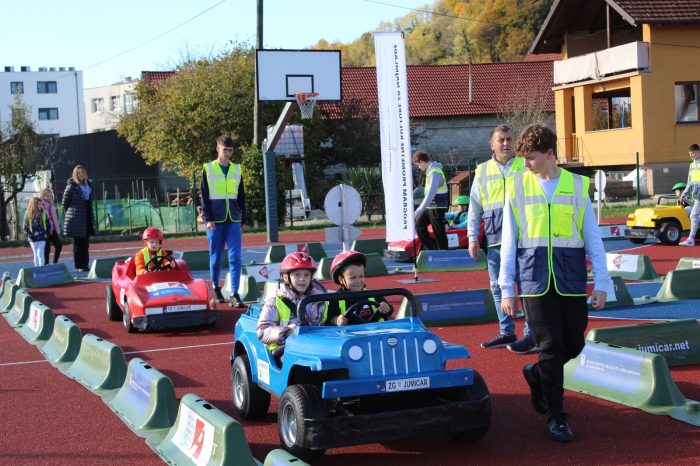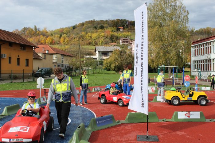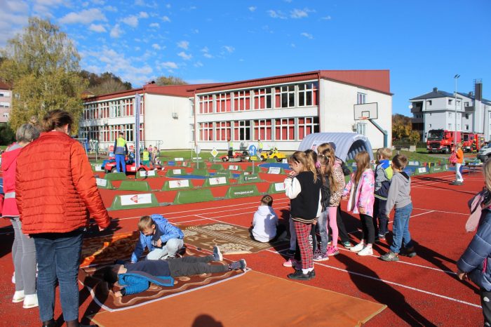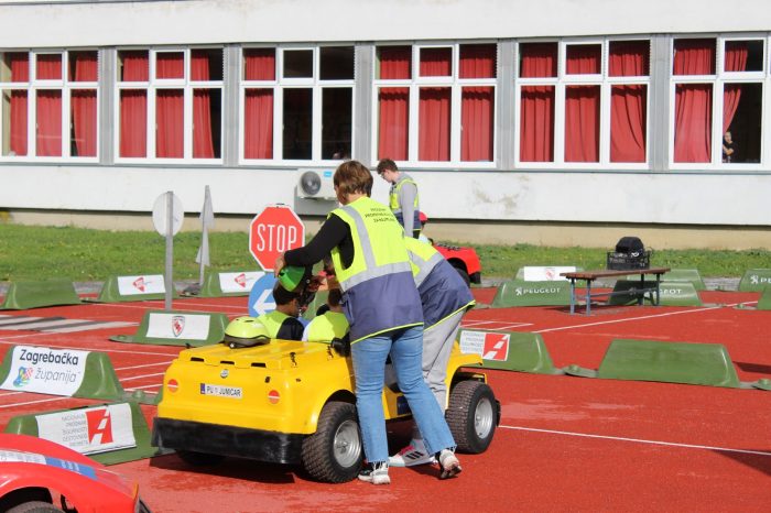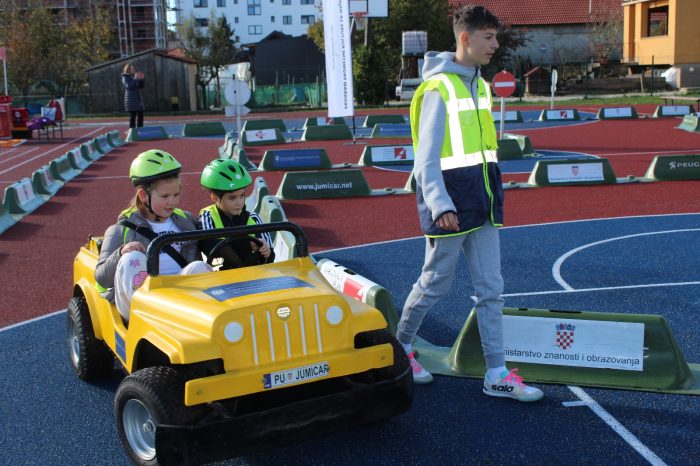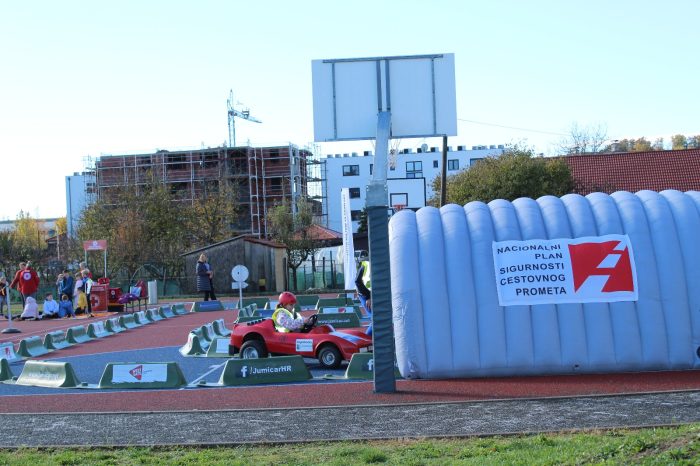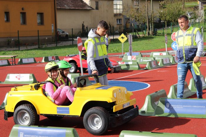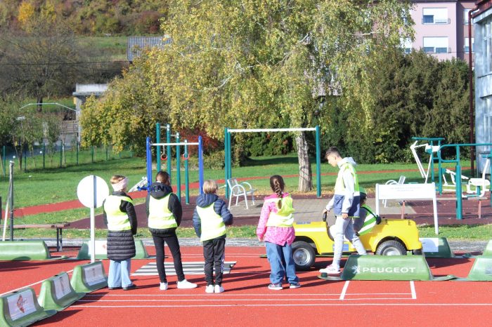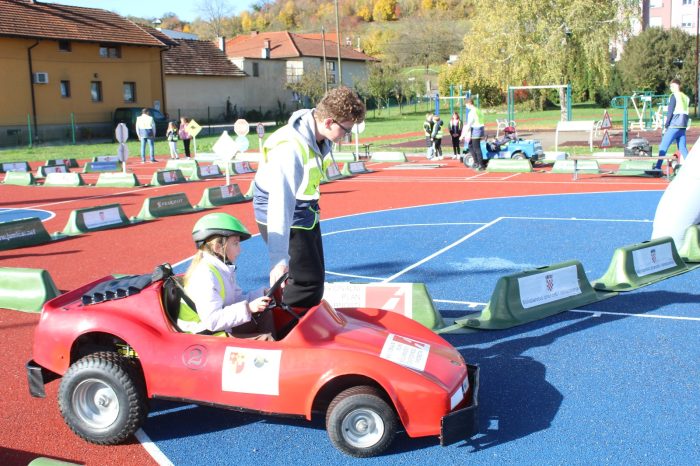 Nakon održanog teorijskog dijela, učenici su prošli obuku o cestovnom prometu, prvoj pomoći i protupožarnoj zaštiti, te kroz igru utvrdili mnogo važnih lekcija. Na šarenom prometnom poligonu, djeca su imala priliku iskušati sve svoje vještine u ulozi vozača, a sve u cilju kako bi bili bolji i sigurniji pješaci. Promet su na poligonu regulirali iskusni instruktori uz pomoć školske prometne jedinice Mateja, David, Ivan i Lukas iz 8.a i 8.b razreda na čemu smo im zaista zahvalni. Mališani su vožnju odradili za čistu peticu, stoga im šaljemo zaslužene potvrdne dokumente.