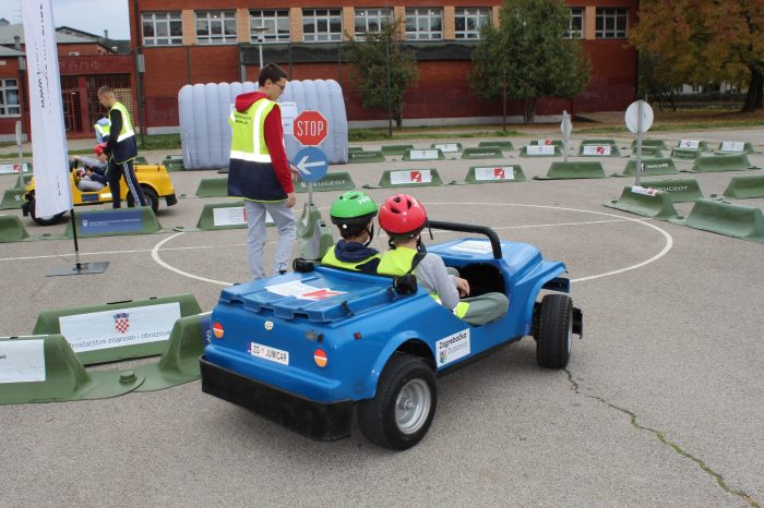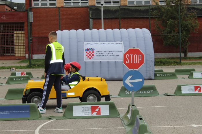 Polaznici programa dobro su se snašli na simuliranoj prometnici na kojoj su promet regulirali iskusni instruktori uz pomoć školske prometne jedinice iz 7. razreda na čemu smo im zaista zahvalni. Sudjelovali su učenici 7.b razreda Igor G., Fran N., David B., Loren P. i Ivano, Filip, Danijel i Ante iz 7.d razreda. Učenike je organizirala učiteljica Anita Horvatinović koja nas je ujedno i dočekala i bila naš kontakt, hvala učiteljice na suradnji.