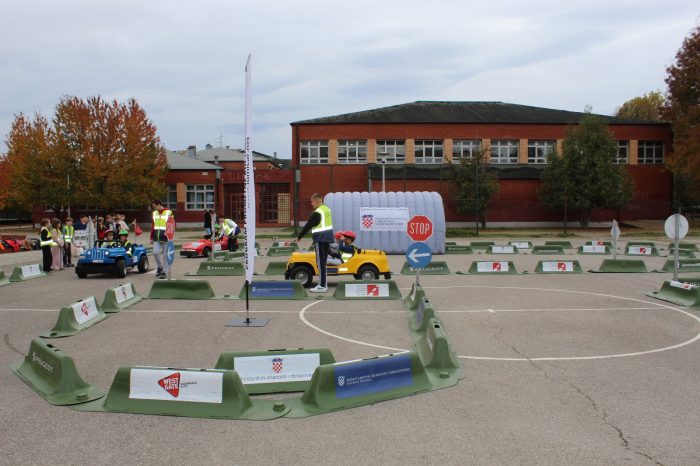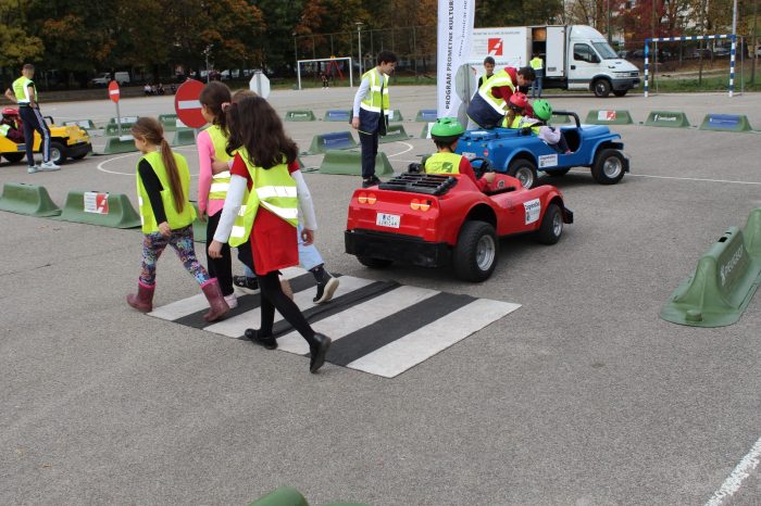 Nakon odslušanog teorijskog dijela ( u trajanju od 45 minuta) gdje su učenici kroz multimedijsko interaktivno predavanje učili o sigurnom ponašanju u cestovnom prometu ), uslijedio je praktični dio programa u pravim mini-električnim automobilima gdje djeca na jedinstven način uče o sigurnosti u prometu, a sve u cilju da postanu još bolji pješaci.