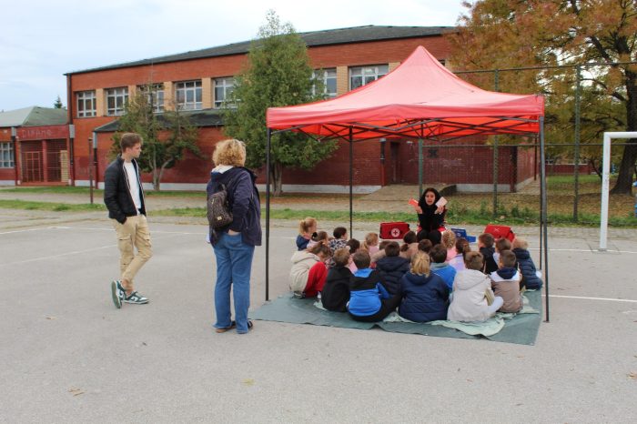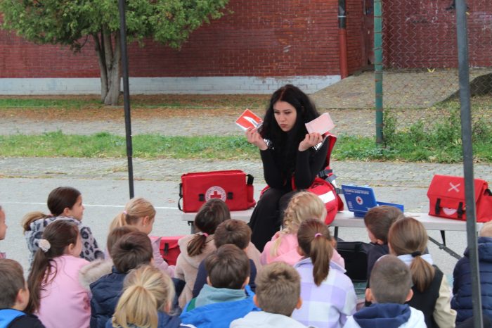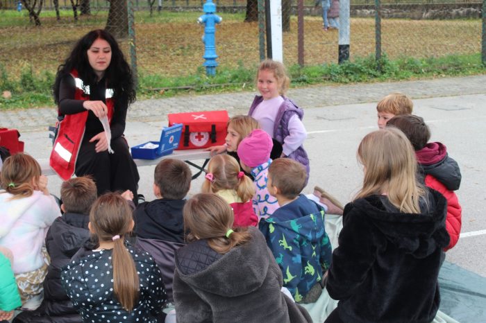 Učenici su sa zanimanjem promatrali kako se zamata lakša ozljeda, a mnogi su i sami iskušali ovu vještinu. Ukratko se ponavljaju brojevi hitnih službi nakon čega se učenicima postavlja pitanje o razlici između prve i hitne pomoći. Naglašava se važnost onih informacija koje je pri tom pozivu nužno reći (Što se dogodilo? Gdje se dogodilo? Kako se dogodilo?).. Nakon toga djeca imaju priliku naučiti kako postupiti kada su u pitanju lakše ozljede (ogrebotine, opekotine, giljotine) ili kako postupiti u nekim situacijama npr. (krvarenje iz nosa)….